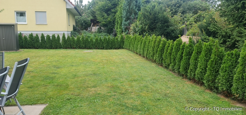 Die Terrasse ist absolut perfekt zum Sonnenbaden und blickdicht. Das Haus wurde so errichtet, dass die wichtigsten Räume immer viel Lichteinfall haben.
