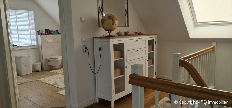 4,5 Wohn-/Schlafräume, Original Schwedenhaus, großer Wohnbereich, großer und heller Essbereich im Wohnzimmer, große Wohnküche, Duschbad mit WC, großes Vollbad im Obergeschoss, alle Räume haben Premium Designerböden oder hochwertige italienische Fliesen, alle Fenster mit maßgefertigten Lamellen-Holz-Shutter und 3-fach Isolierverglasung, 3 zusätzliche Veluxfenster zur Sonnenseite mit elektrischen Außenrollos, teilweise Außen-/ Fenstermarkisen, Kaminvorbereitung, superschnelles Internet (Glasfaser liegt am Haus), moderne Gas-Heizung, alle Räume mit Fußbodenheizung, Eingangsbereich mit Holz-Veranda, große Terrasse mit Blick in den Garten, TOP ruhige aber zentrale Lage, 2 Garagen und mehrere Stellplätze, Solarthermie Anlage für die kostenlose Warmwasseraufbereitung, Kameraüberwachungssystem und Alarmanlage, Whirlpool, Nähe zum Naturschutz- und Waldgebiet, zentrumsnah