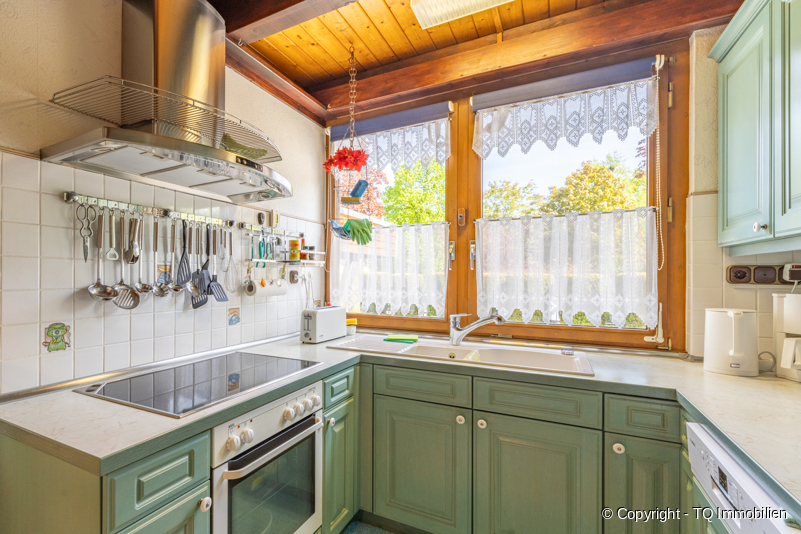 4 Wohn-/Schlafräume, großer Wohnbereich, großer Essbereich im Wohnzimmer, Wohnküche, modernes Duschbad, Wannenbad, viele große oder breite Fensterflächen, teils elektrische Fensterrollläden, alle Fenster mit Isolierverglasung, Kamin, Carport und mehrere Stellplätze, schnelles Internet (Glasfaser), Öl-Heizung, teilweise mit Fußbodenheizung, großer Balkon und große Terrasse mit Blick in den japanisch angelegten Garten, mehrere Kellerräume plus zusätzlichen Büroraum, Werkstatt, Waschküche, extra Kellerzugang, zentrumsnah