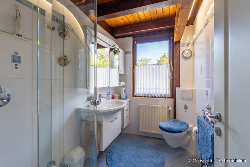 Die Bäder sind teils mit Fußbodenheizung versehen. Die Fenster sind isolierverglast. Und zum Haus gehören noch teils elektrische Außenrollläden, ein Carport sowie ein kleines Gartenhaus.