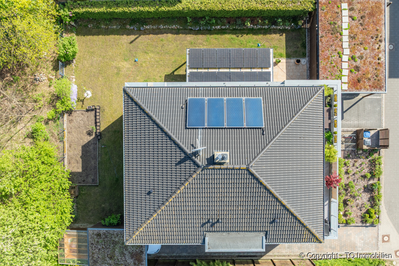 Die Wohneinheit wird über eine Gasbrennwerttherme erwärmt. Die Warmwasseraufbereitung erfolgt solar unterstützt. Das Haus ist ein KFW-70 Effizienzhaus und somit sind die Nebenkosten vergleichsweise recht günstig.
